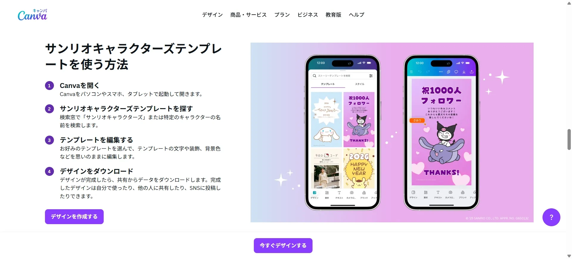 👉 公式:Canva サンリオキャラクターズ特設ページ(よくある質問)