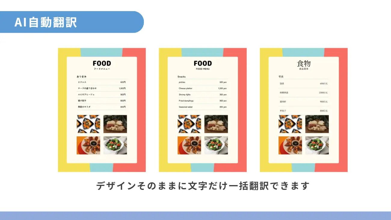 1. メニュー表が一瞬で多言語対応に!?