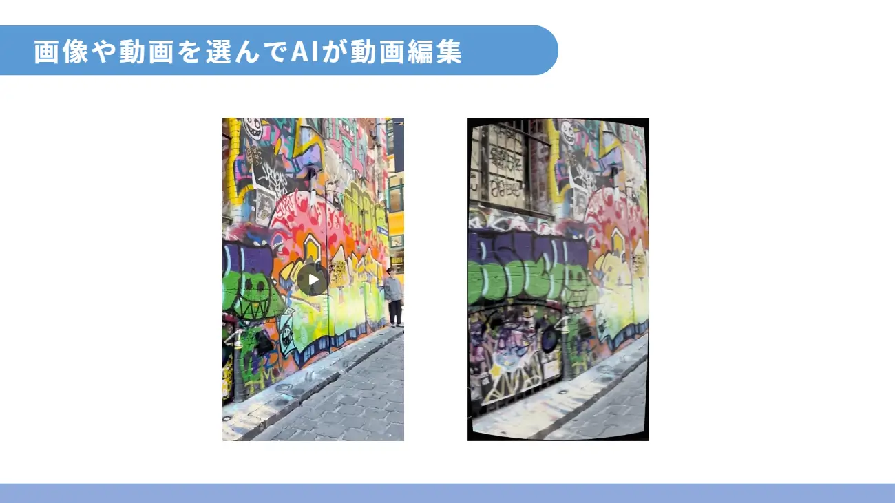おしゃれなシーンの切り替えや、文字や音楽まで追加してくれるんですよ!