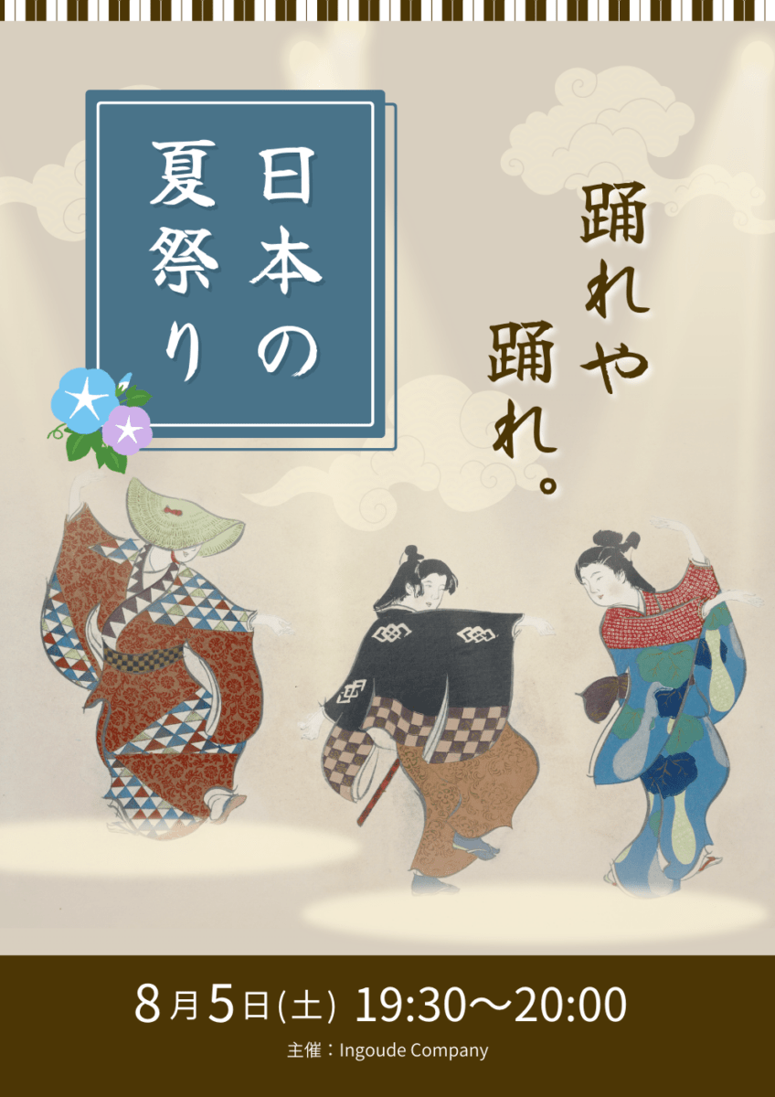 青 茶色 日本 夏祭り ポスター縦